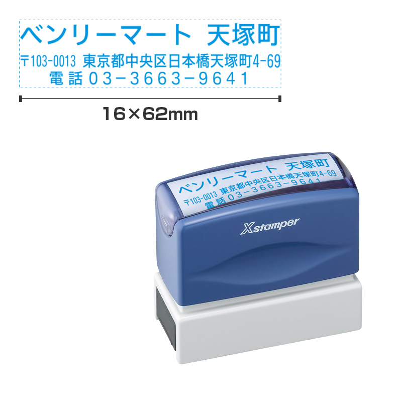 チラシやパンフレットなど、ツルツルとした光沢のある紙にも、しっかりと乾いてきれいに捺せるスタンプです。軽い力で、連続してスムーズに捺印できるのも特長のひとつ。インキの補充ができるため、長く安心してご使用いただけます。[印面サイズ]16×62mm
