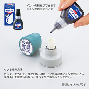 ホルダーを外して、補充口から中のインキ吸蔵体にインキが吸い込まれるのを確認しながら、ゆっくりと補充してください。(画像内の商品はイメージです。)
