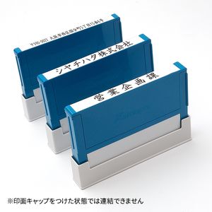 印面キャップを外して立てても印面のインキが紙に付かない、自立式スライド機構を採用。なつ印時の位置合わせにも便利です。